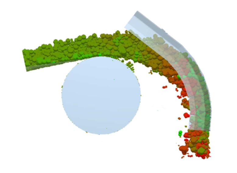 ● 物料以较小的切入角进入导料挡板,冲击小,抑制粉尘,设备磨损小;