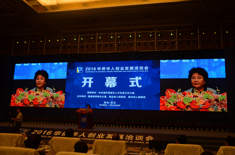 - 中国国务院侨办主任裘援平、中共湖北省委书记李鸿忠、中共武汉市委书记阮成发等出席开幕式并致辞。开幕式上,举行了“华创杯”创新创业大赛颁奖仪式、“湖北省政府海外专家咨询委员”聘书颁发仪式。其中,裘援平为“华创杯”最具创业精神奖获得者颁奖,裘援平与湖北省省长王国生为湖北“侨梦苑”揭牌。