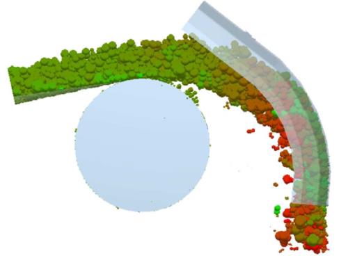 ●物料以较小的切入角进入导料挡板,冲击小,抑制粉尘,设备磨损小;
